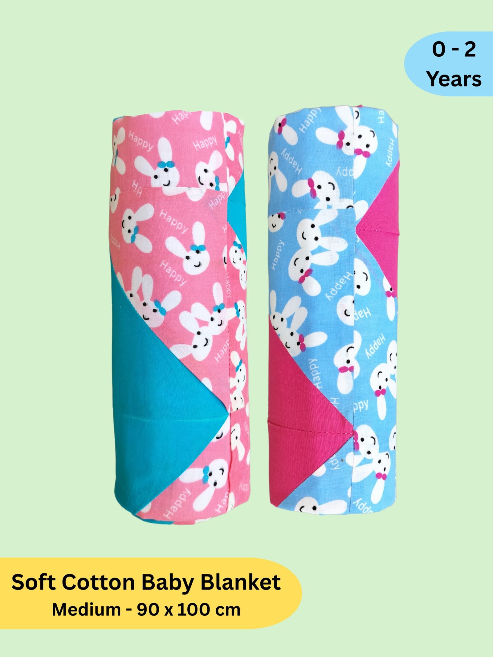 - Features- The handmade blankets are made of two layers of soft cotton. These blankets are 100 x 90 cm in size and square in shape. Suitable for new babies up to 0 to 2 years.