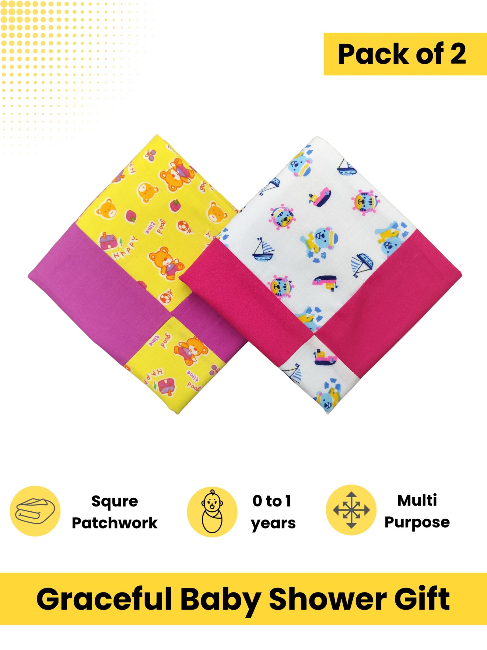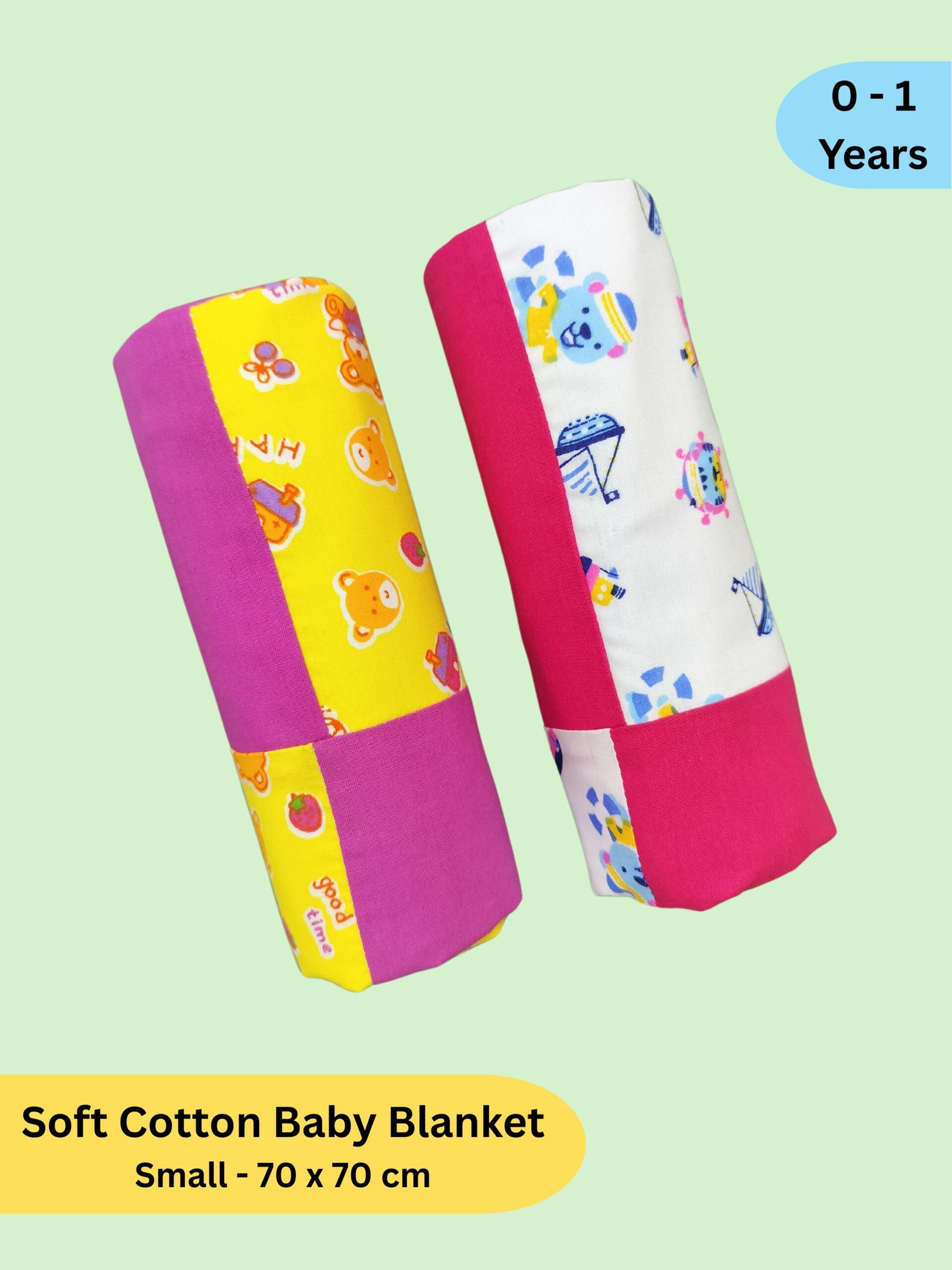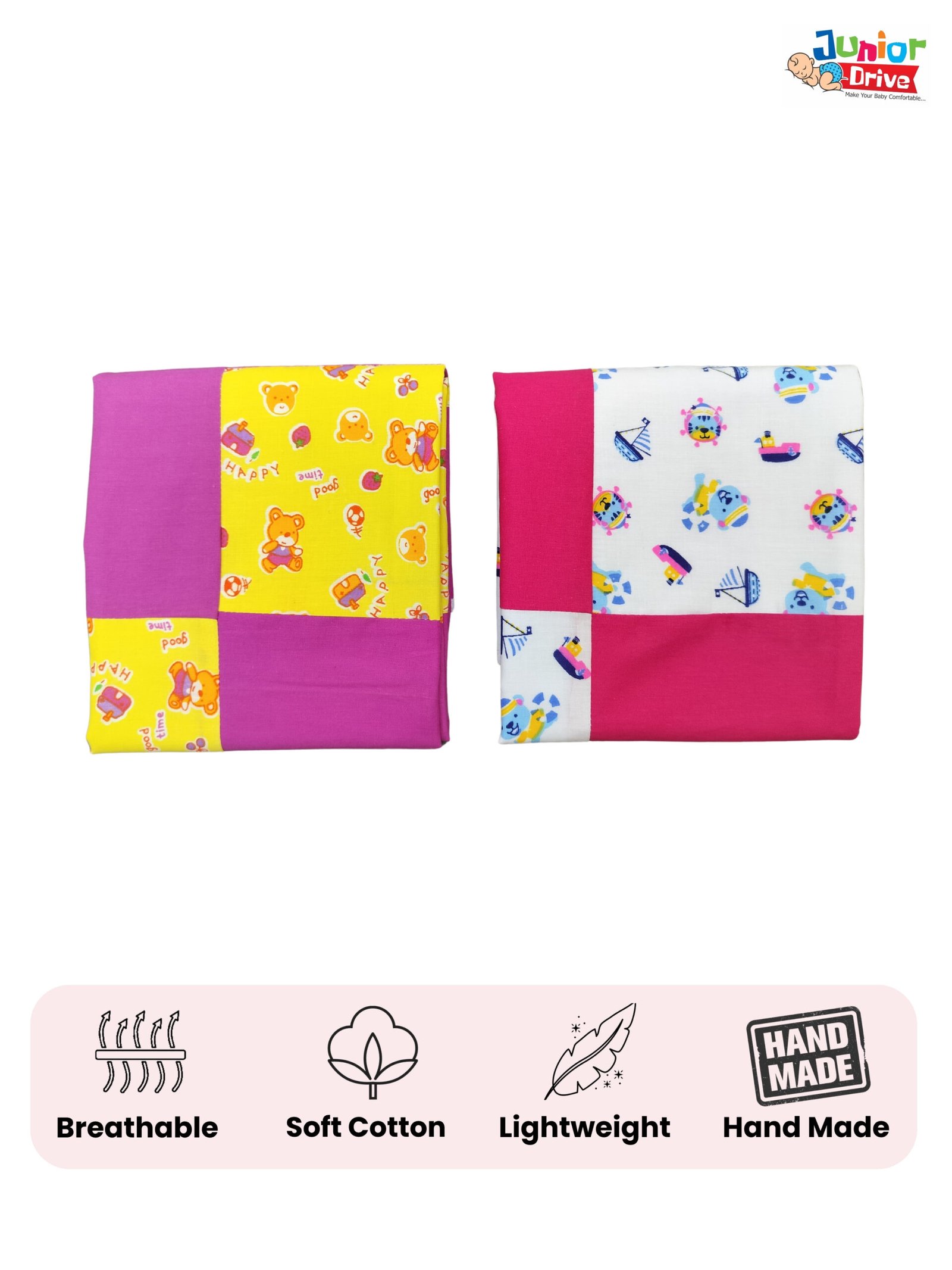 - Features- The handmade blankets are made of two layers of soft cotton. These hooded blankets are 70 x 70 cm in size and square in shape. Suitable for new babies up to 0 to 1 Year.
