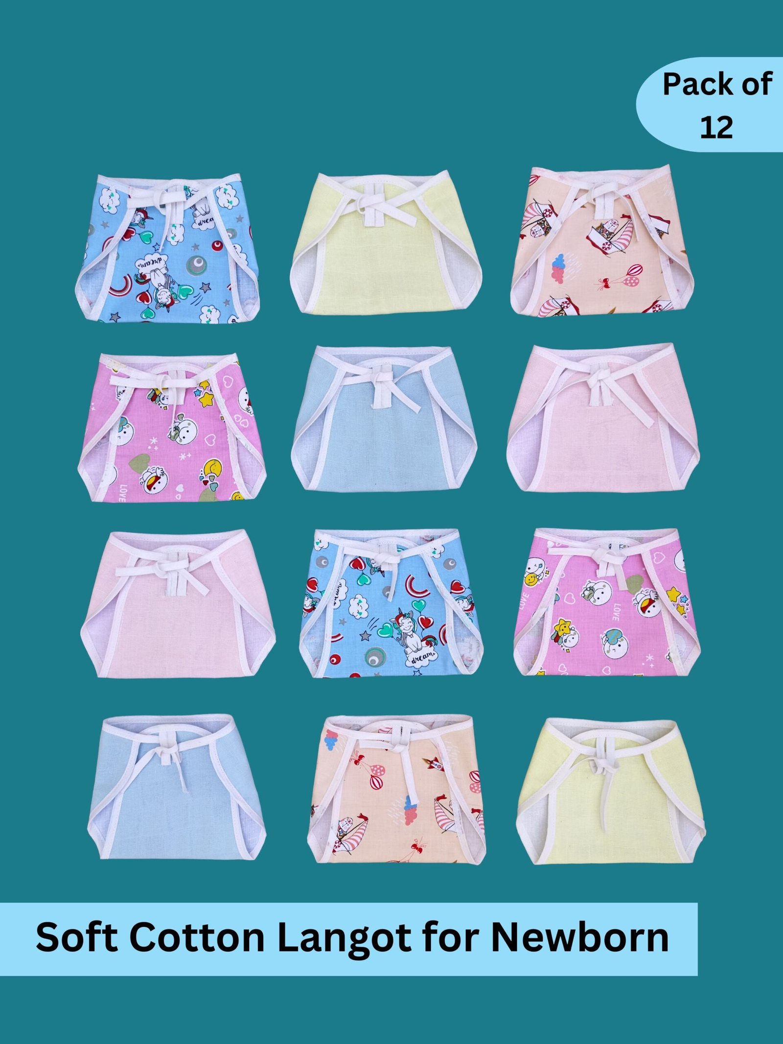 - The set consists of 12 pieces of cotton Langots. This newborn essential is suitable for newborn babies.